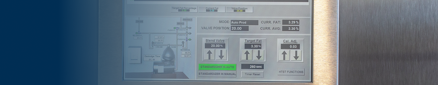 The Standard saves its results and continually learns to accurately set blending equipment to create the best product possible. Factors like seasonal changes to raw materials or milk components and the effects of the surrounding process are recorded, and the system gets better each day at starting or holding the blending valves. No more wobbling after every separator de-sludge or making bad product until the system’s control gets settled in.