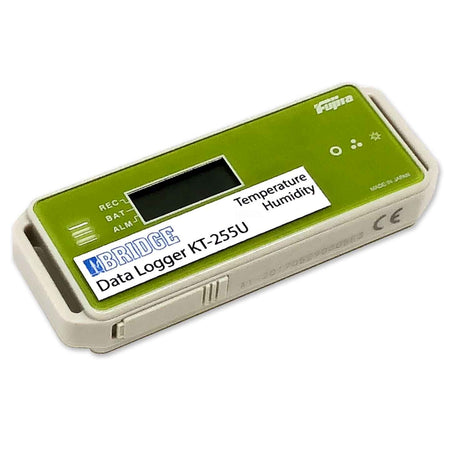This Data Logger measures temperature and humidity and has a battery life of approximately 3 years. Contents include the main body of the data logger, USB cable, software installation CD, and instruction manual. The software included with the data logger allows user to download collected data to a PC for further analysis. The main body size is compact with 34 mm in length × 90 mm in width × 15 mm in height. The measurable temperature ranges from minus 40 degrees Celsius to 80 degrees Celsius, while the humidity ranges from 5 percent to 90 percent. The measurement interval can be set from 1 minute to 255 minutes.